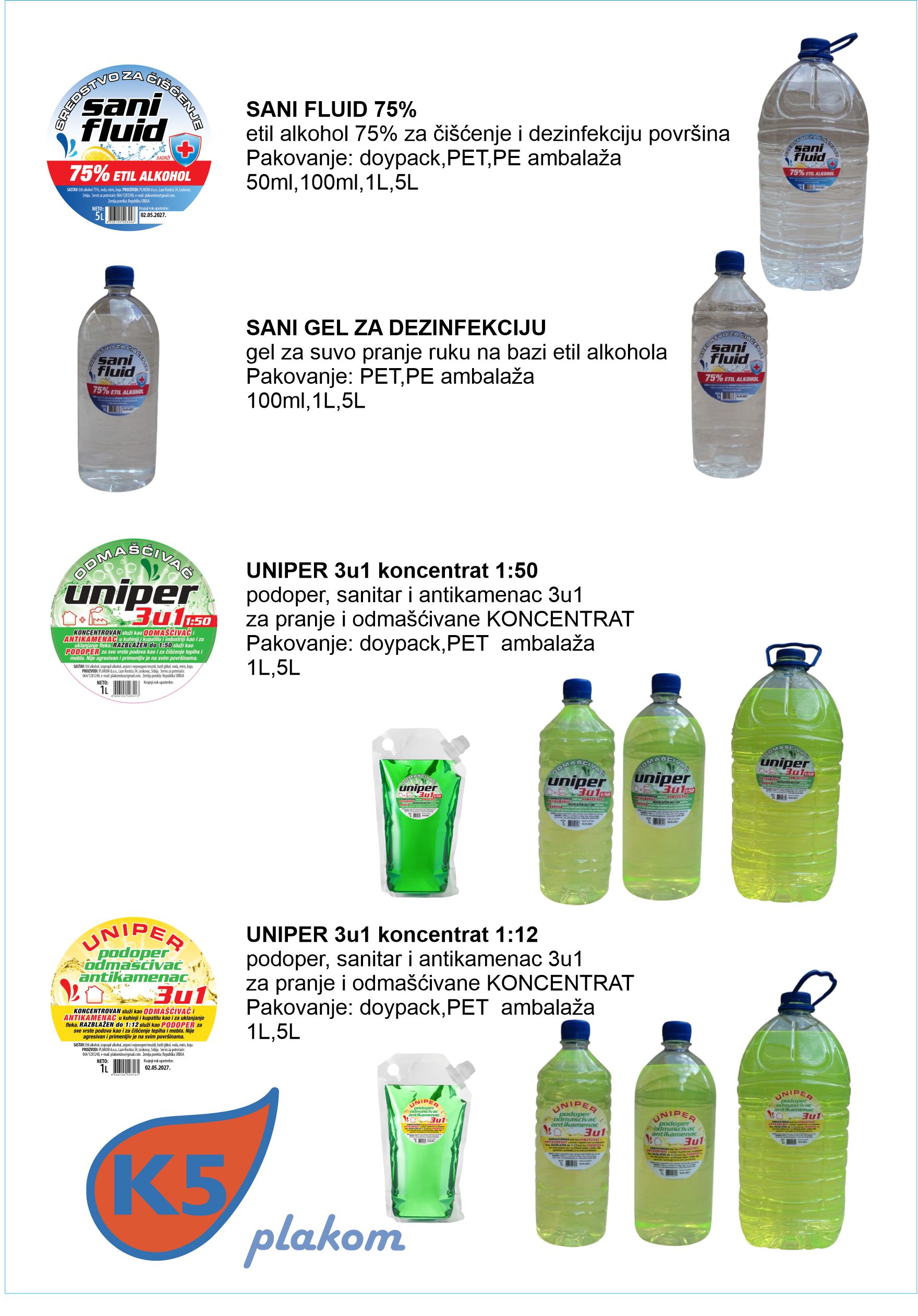 Hemijske proizvode pakujemo u svim zapreminama i vrstama ambalaže. Pored plastičnih boca (PET i PE ambalaža) za pakovanje naših proizvoda, prvi i jedini na tržištu koristimo i transparentne doypack kese sa čepom. Osim vizuelne prednosti, ova vrsta ambalaže utiče na smanjenje plastičnog otpada i zagađenje životne sredine.